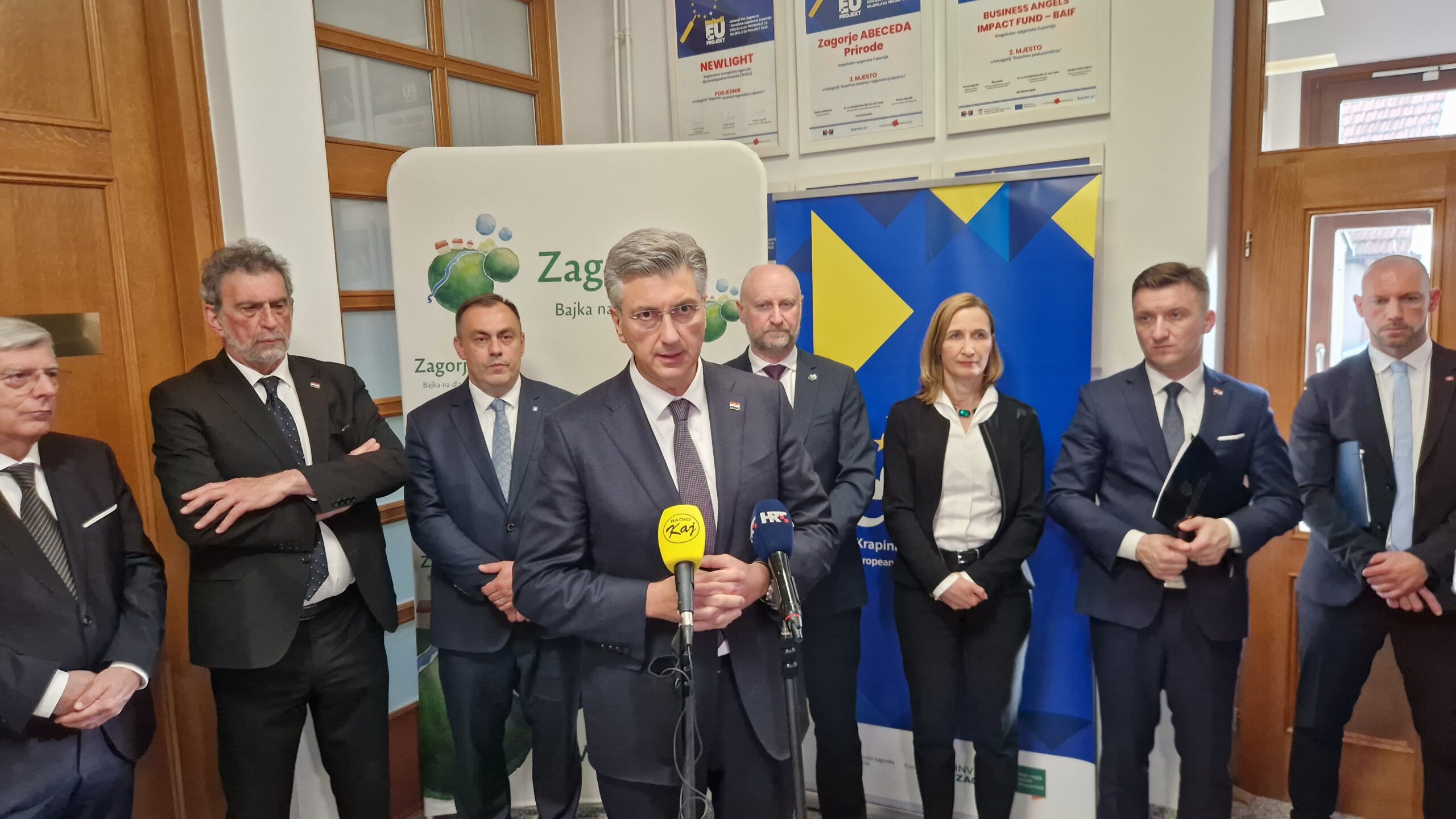 KRAPINA – Predsjednik Vlade RH Andrej Plenković održao je u utorak, 21. travnja 2026. godine, radni sastanak sa županom Krapinsko-zagorske županije Željkom Kolarom u njegovom uredu u Krapini. Predsjednik Vlade Plenković tom je prilikom istaknuo kako se na području županije provodi niz važnih projekata, naglasivši kvalitetnu suradnju između svih razina vlasti. Dodao je da politika ravnomjernog regionalnog razvoja donosi konkretne rezultate kroz zajedničke projekte Vlade, županija, gradova i općina. – To su primjeri izvrsne suradnje i sinergije onoga što nazivamo „tim Hrvatska“, rekao je Plenković, istaknuvši projekte u prometu, pravosuđu i obrazovanju, među kojima i izgradnju nove Osnovne škole Ljudevita Gaja u Krapini. Naglasio je i kako je cilj objediniti napore svih razina vlasti kako bi se osigurali preduvjeti za viši životni standard i gospodarski razvoj.