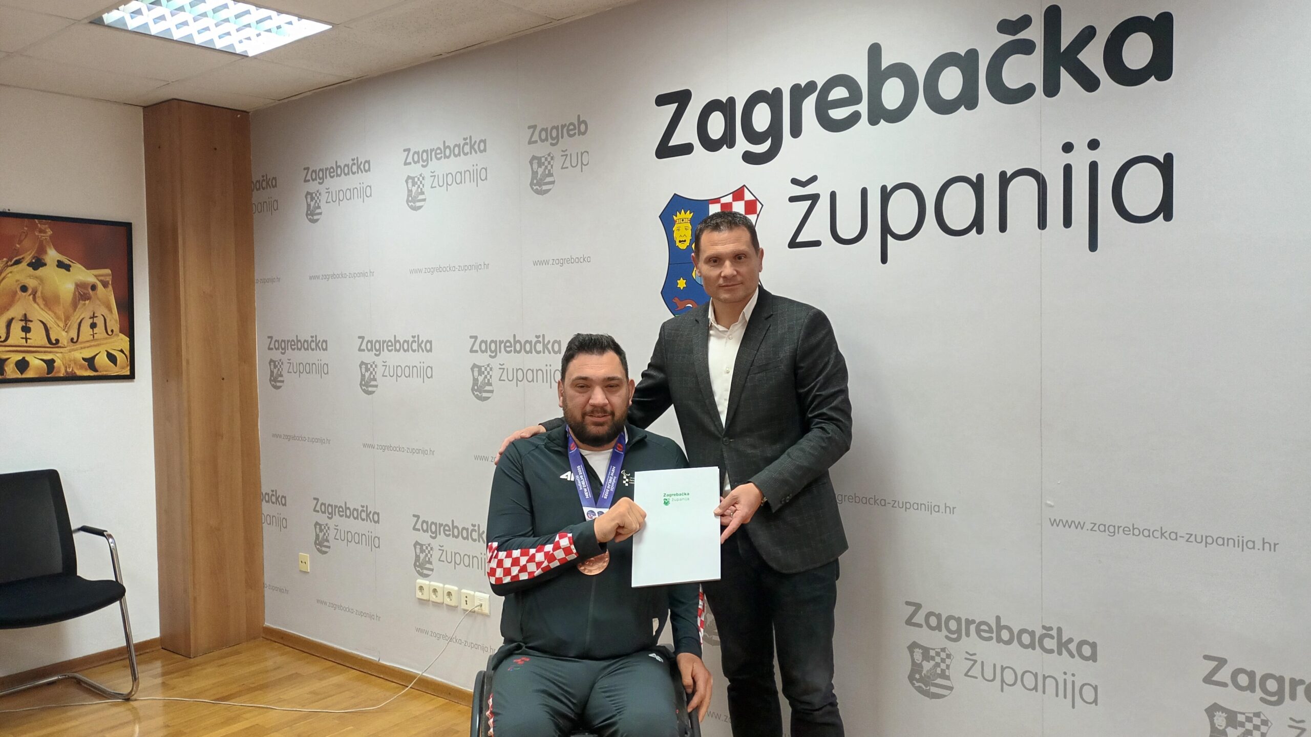 ZAGREB – Za jednog od najuspješnijih parasportaša Velimira Šandora, koji je na nedavno održanom Svjetskom paraatletskom prvenstvu u New Delhiju osvojio brončanu medalju u bacanju diska u kategoriji F52, u Zagrebačkoj županiji održan je prijem u utorak, 14. listopada 2025. godine. Šandoru je ovo osma medalja sa svjetskih i europskih natjecanja te Paraolimpijada u proteklih 10 godina. Šandora i njegov tim primio je zamjenik župana Ervin Kolarec koji mu je čestitao na još jednom vrhunskom sportskom rezultatu za koji je prigodno nagrađen novčanom nagradom u iznosu od 660 eura.